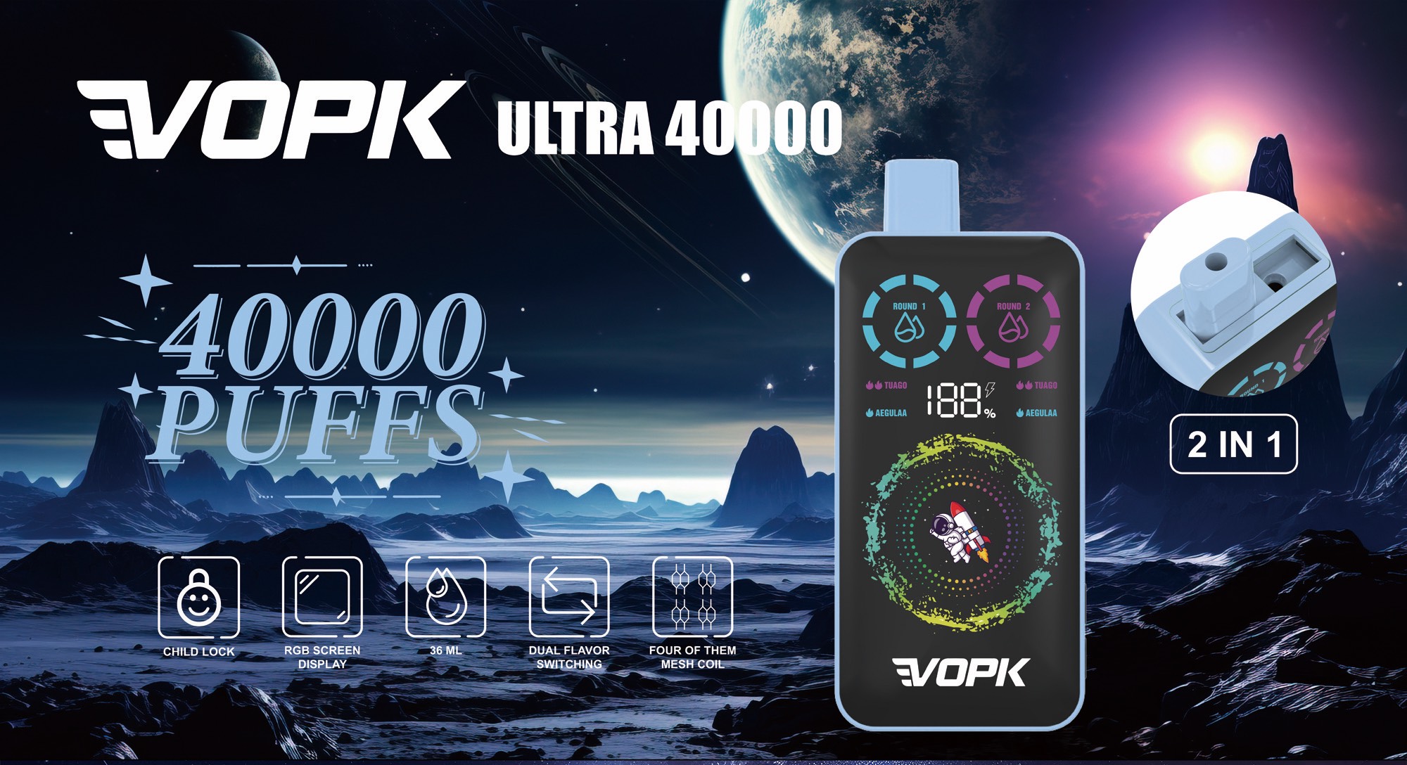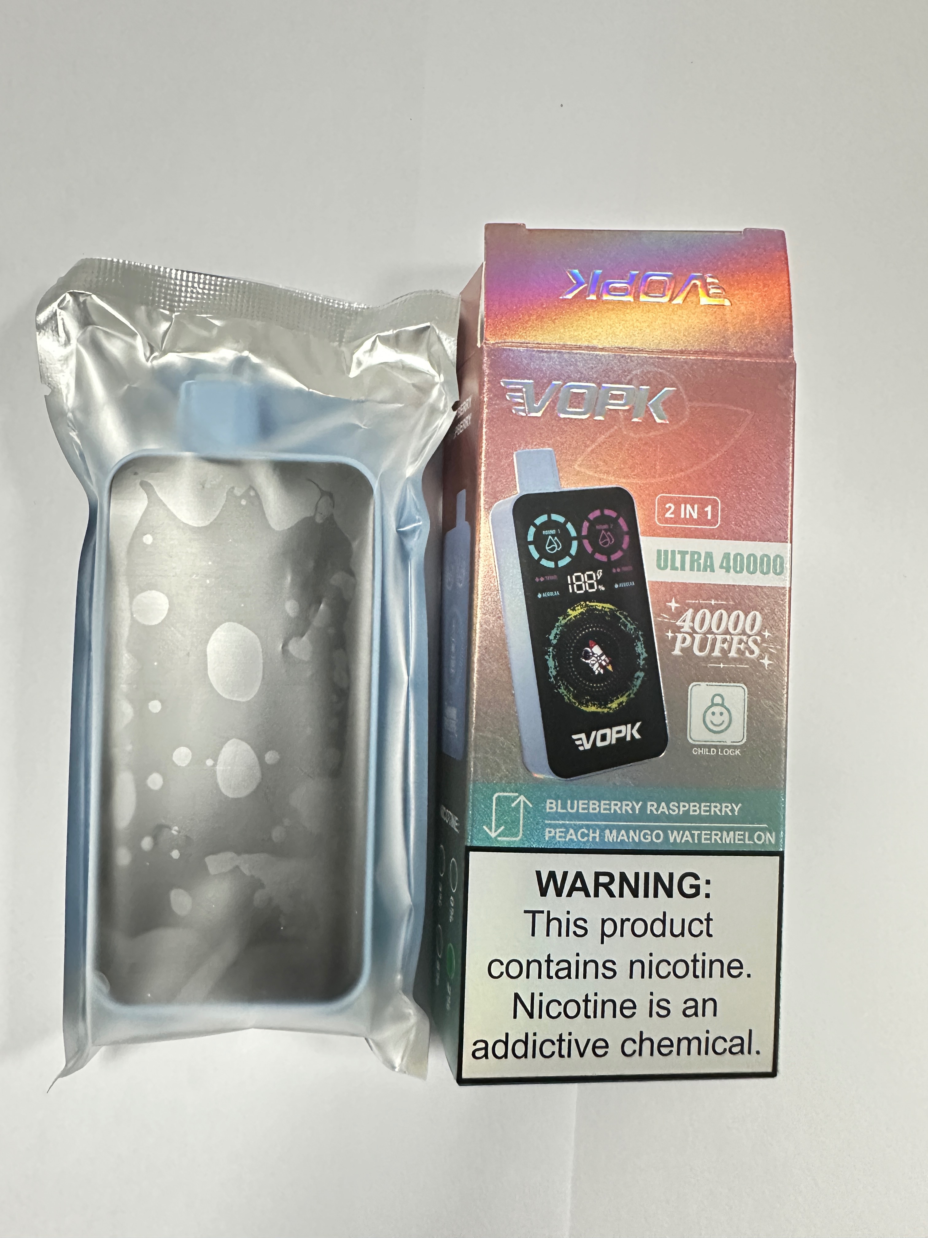 VOPK-ULTRA40000puffs,双口味一次性大屏显示,可调节单双发功率,带童锁,左右拨动切换口味,爆款产品!现货发售,无起定量!